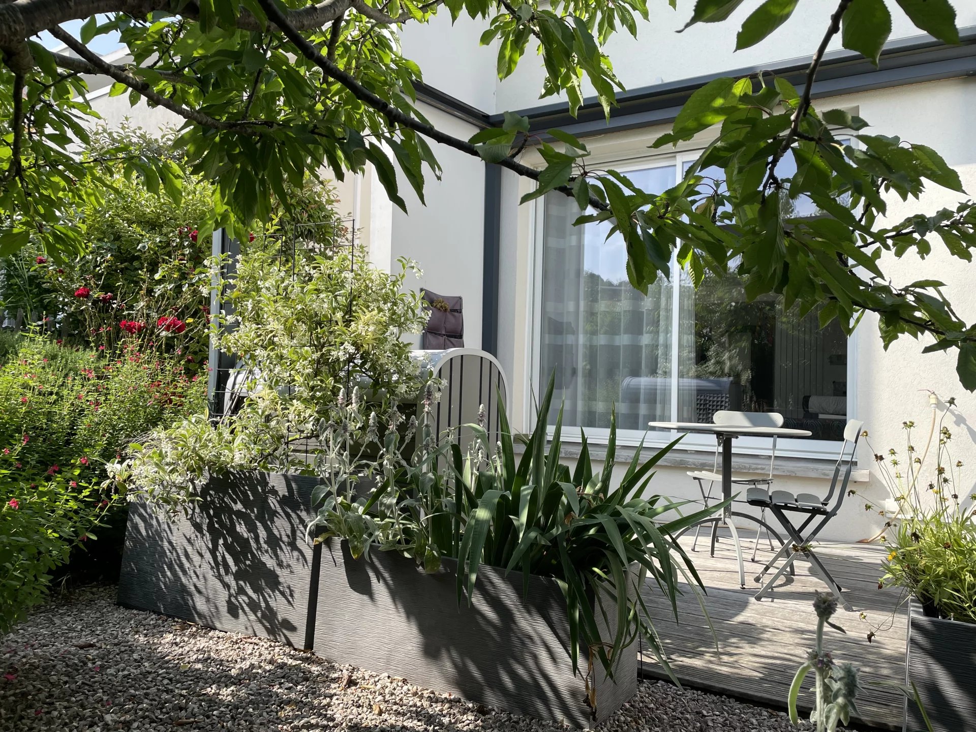 Située sur la commune d'Auzeville à proximité immédiate de toutes les commodités et à quelques pas du canal du midi, jolie maison de 97 m2 avec son petit jardin très joliment fleuri et sa belle terrasse en bois assortie d'une pergola. Dans une petite copropriété, cette maison récente offre une belle exposition sud/sud ouest, elle est composée en rez de chaussée d'un séjour lumineux avec cuisine équipée ouvrant sur terrasse, ainsi qu'une suite parentale avec salle d'eau et toilettes. A l'étage, une mezzanine entièrement aménagée peut être utilisée en bureau, 2 autres chambres ainsi qu'une belle salle d'eau avec toilettes complètent ce bel ensemble. A l'extérieur, terrasse et pergola permettent de profiter de ce petit jardin intime avec son cerisier et une flore particulièrement variée. La maison dispose d'un double box fermé. Produit très soigné aux très jolies prestations.
