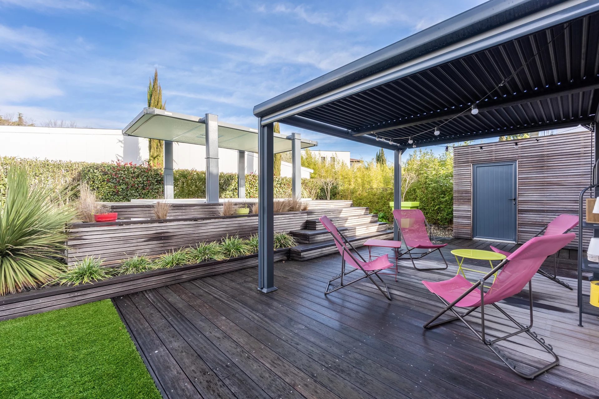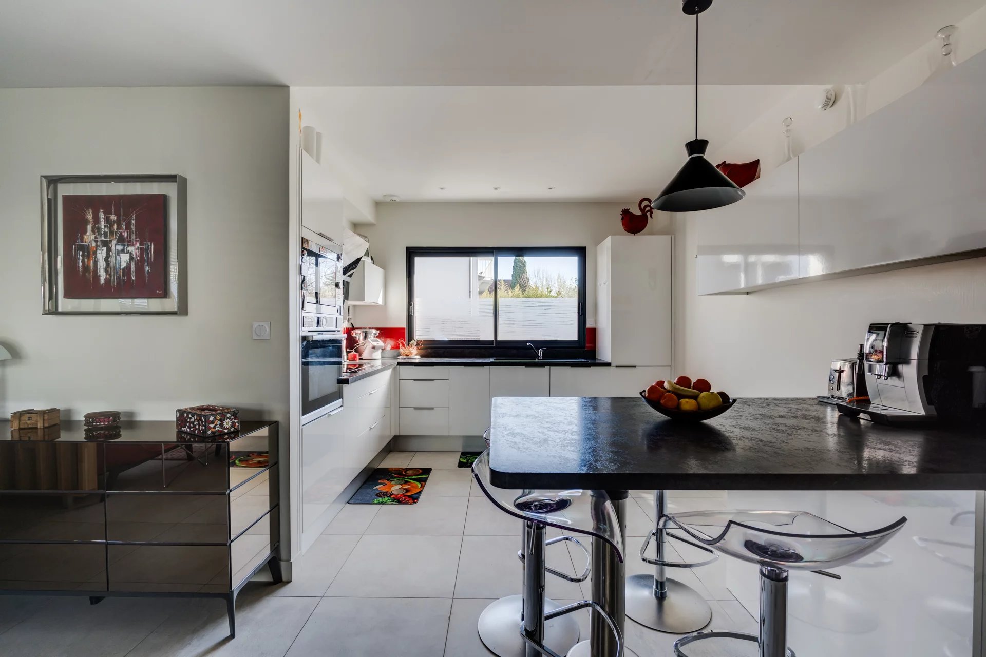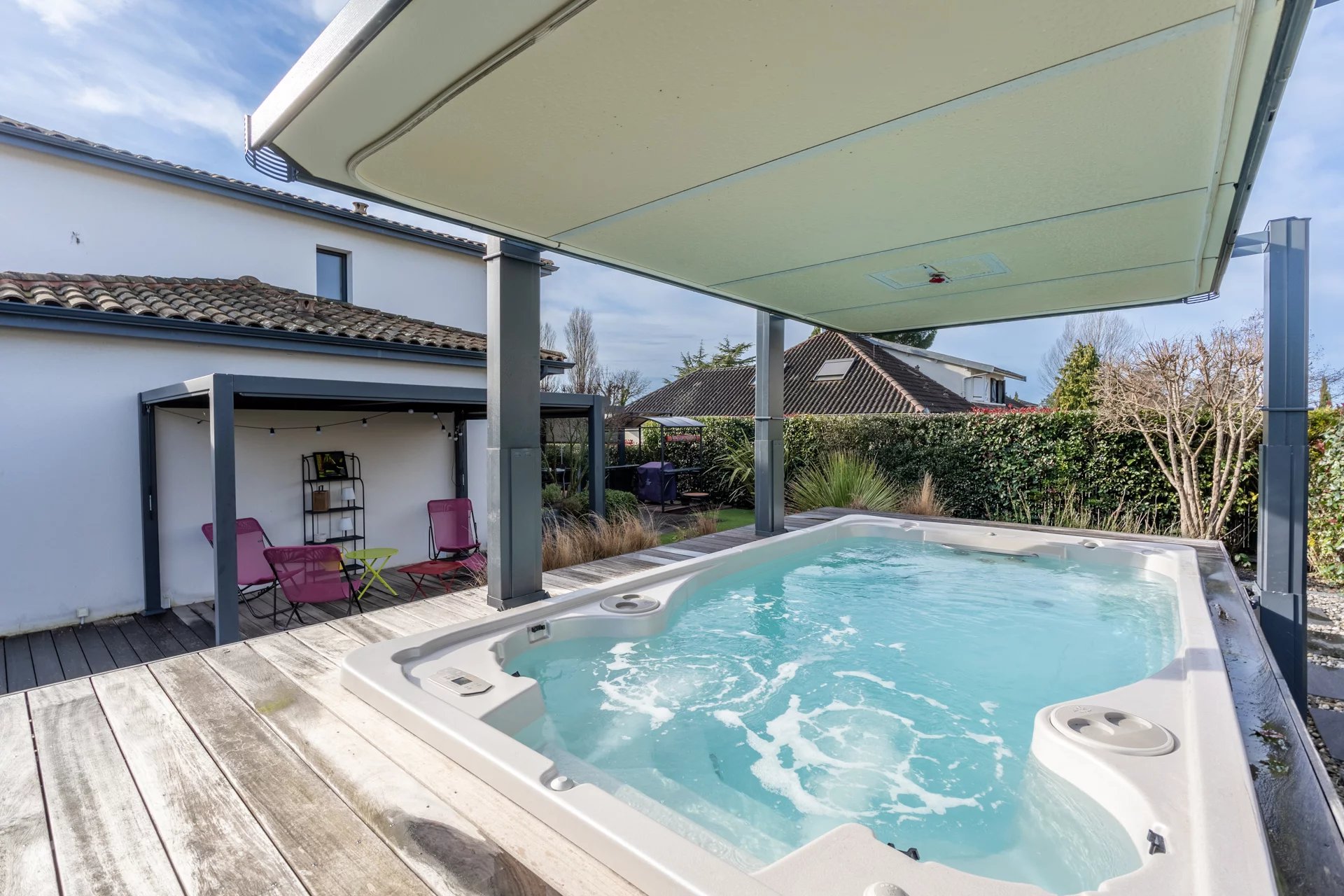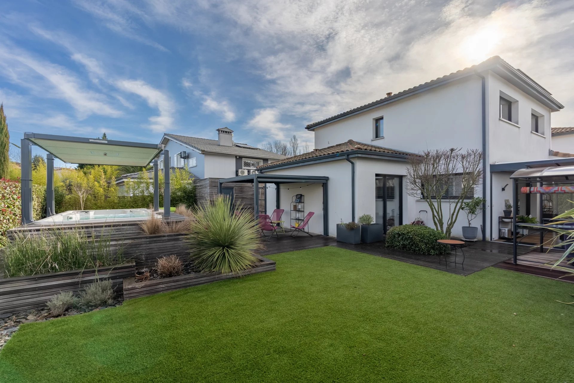 Rare opportunité : Villa contemporaine récente sans travaux, prestations modernes et charges énergétiques ultra optimisées ! Sur les hauteur de la commune de Balma, au calme, élégante villa contemporaine de 120 m² construite en 2017 édifiée sur un beau terrain paysager de 600 m2. Le rez-de-chaussée offre une entrée accueillante, un séjour lumineux ouvert sur une jolie cuisine américaine à l'esprit très contemporain ainsi qu'une suite parentale avec salle d'eau et dressing, toilettes indépendant. Une pergola bio climatique entièrement vitrée de 21 m² complètent l'ensemble. Bien que non intégrée dans la surface habitable, cette extension constitue une véritable pièce à vivre supplémentaire, idéale à mi-saison. A l'étage, l'espace nuit se compose de trois chambres une salle de bains et de toilettes séparés. A l'extérieur, un jardin soigné et sans vis à vis agrémenté d'une piscine/spa avec sa couverture intégrée offre un espace de détente très agréable. La villa dispose également de deux garages dont l'un aménagé avec mezzanine et buanderie. Côté performances énergétiques : Chauffage par pompe à chaleur offrant un confort et une facture énergétique des plus compétitive (90 euros par mois) complété par 12 panneaux solaires. Honoraires à la charge des vendeurs. Les informations sur les risques auxquels ce bien est exposé sont disponibles sur le site Géorisques : georisques.gouv.fr.