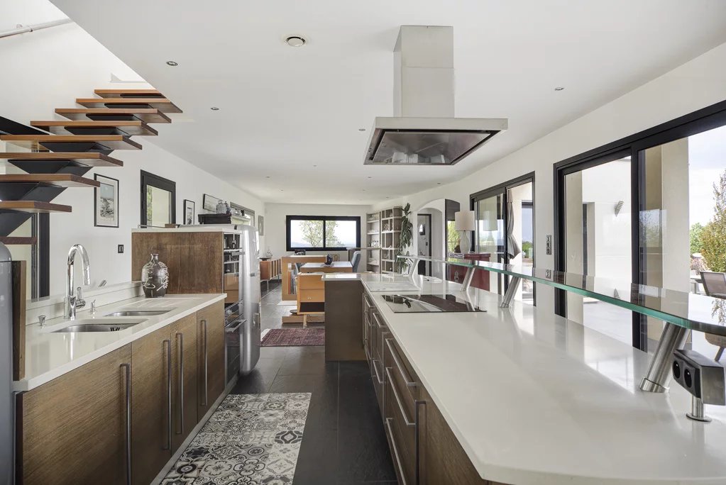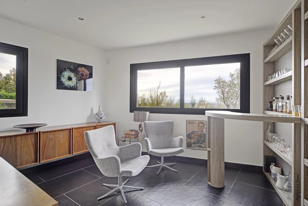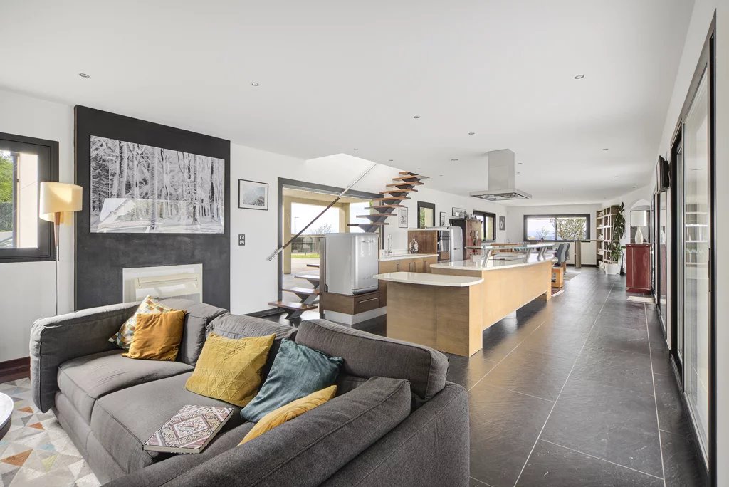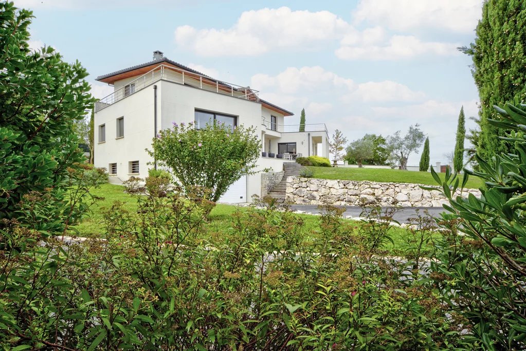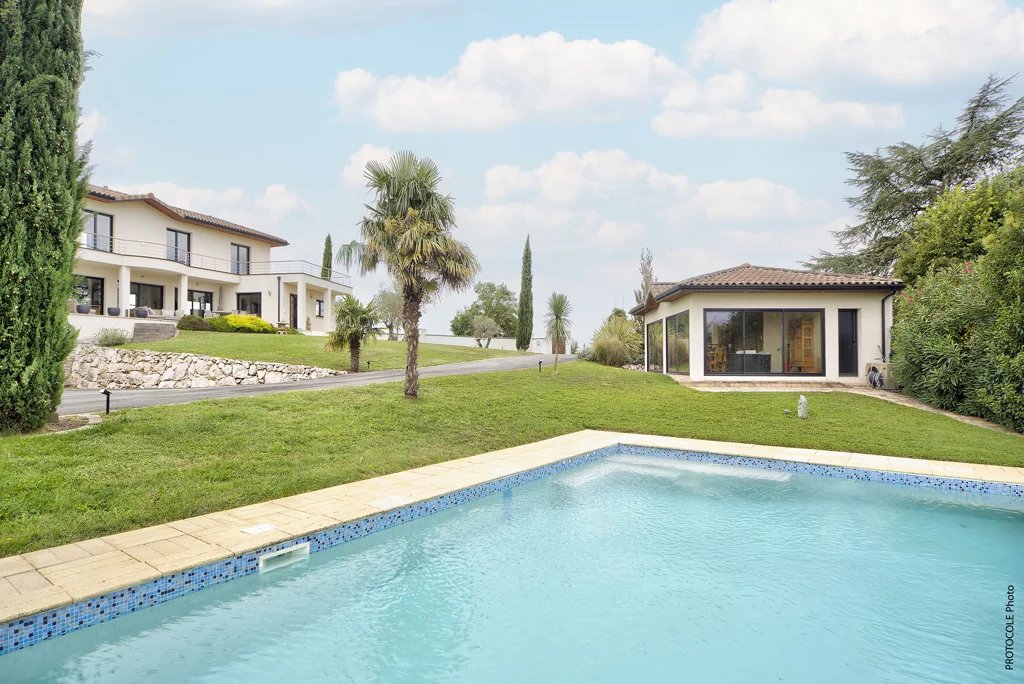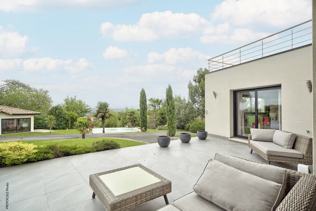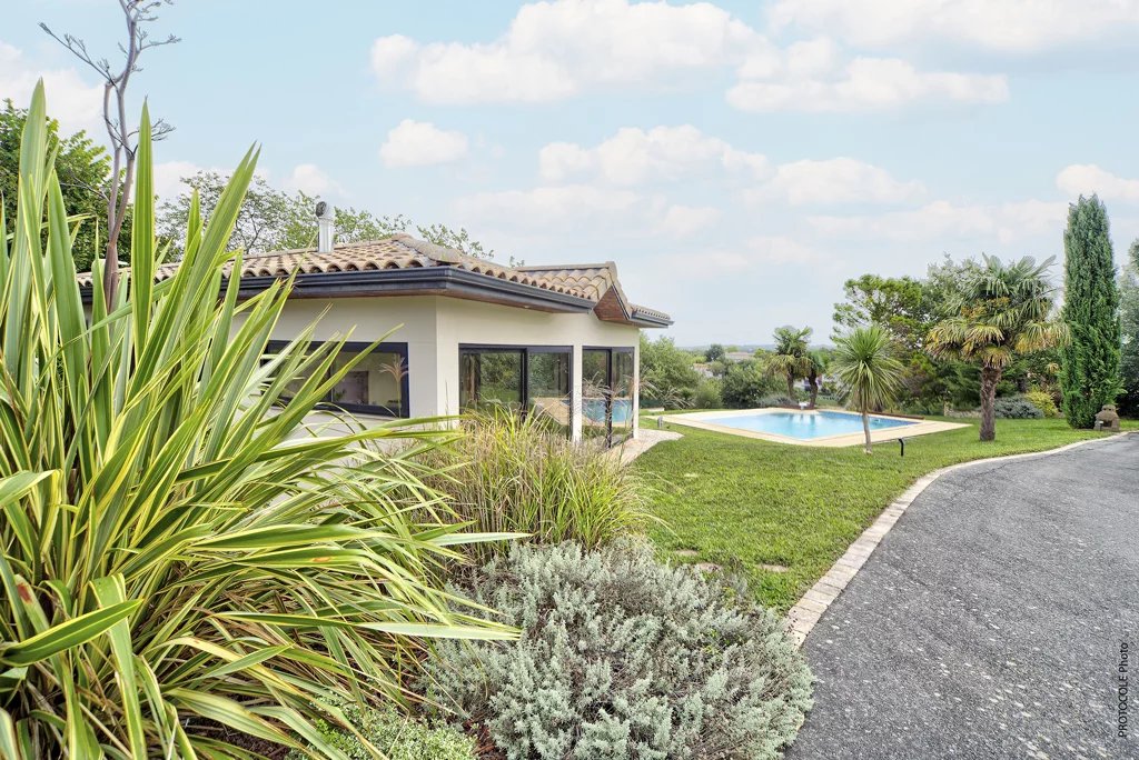 Située à seulement 15 minutes du centre de Toulouse, au cœur des coteaux sud, cette maison d'architecte de 2009 offre un cadre de vie unique mêlant luxe, confort et sérénité. Edifiée sur une magnifique parcelle entièrement paysagée de 3 161 m² entièrement clôturé, cette propriété bénéficie d'une vue panoramique spectaculaire sur les Pyrénées et la plaine toulousaine. Avec une surface habitable de 280 m², cette demeure traversante est baignée de lumière et offre des espaces généreux et parfaitement agencés. Niveau principal : L'espace de vie de 100 m², ouvert sur les terrasses, le jardin et la piscine, invite à la convivialité avec un salon équipé d'une cheminée, une cuisine ouverte moderne, et un espace repas spacieux. Une suite parentale et un bureau complètent ce niveau, idéal pour une vie de plain-pied. Niveau supérieur : Quatre chambres lumineuses avec rangements, une salle de bains et un WC offrent confort et intimité à toute la famille, tout en profitant d'une vue imprenable. - Sous-sol fonctionnel - En plus d'être un gage de qualité de construction, le sous-sol de 90 m² accueille vos véhicules, une salle de sport, une buanderie et une cave à vins. - Des extérieurs d'exception - Pensés pour la détente et le plaisir, les extérieurs sont parfaitement aménagés : Une piscine balnéo chauffée de 9x5m, idéale pour se relaxer. Une dépendance - pool house entièrement équipé avec cuisine. Un boulodrome pour vos moments de loisirs. Un garage secondaire et un grand préau modulable (possibilité de transformer en dépendance fermée). - Un cadre unique et préservé - Construite avec des matériaux haut de gamme et une attention minutieuse aux détails, cette maison conjugue modernité et respect de l'environnement naturel. À proximité immédiate des commerces et du village, elle reste un havre de paix au cœur des coteaux de Lacroix Falgarde. Pour les amateurs de calme, de nature et d'élégance, cette propriété rare sur le marché saura séduire les amoureux des grands espaces et de la qualité.