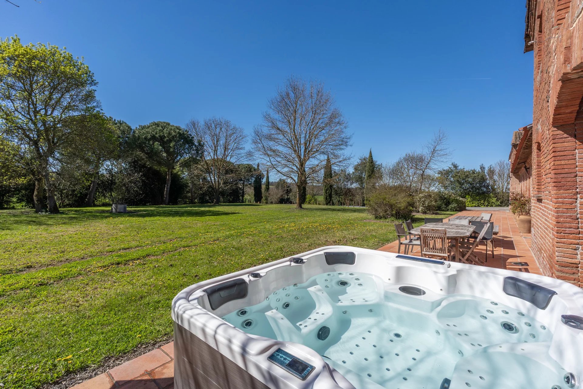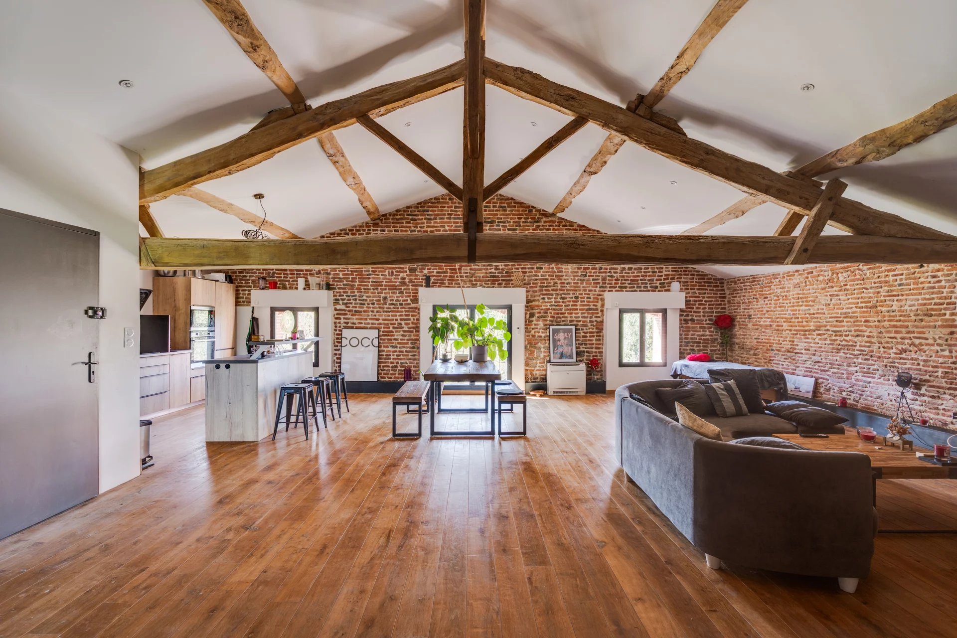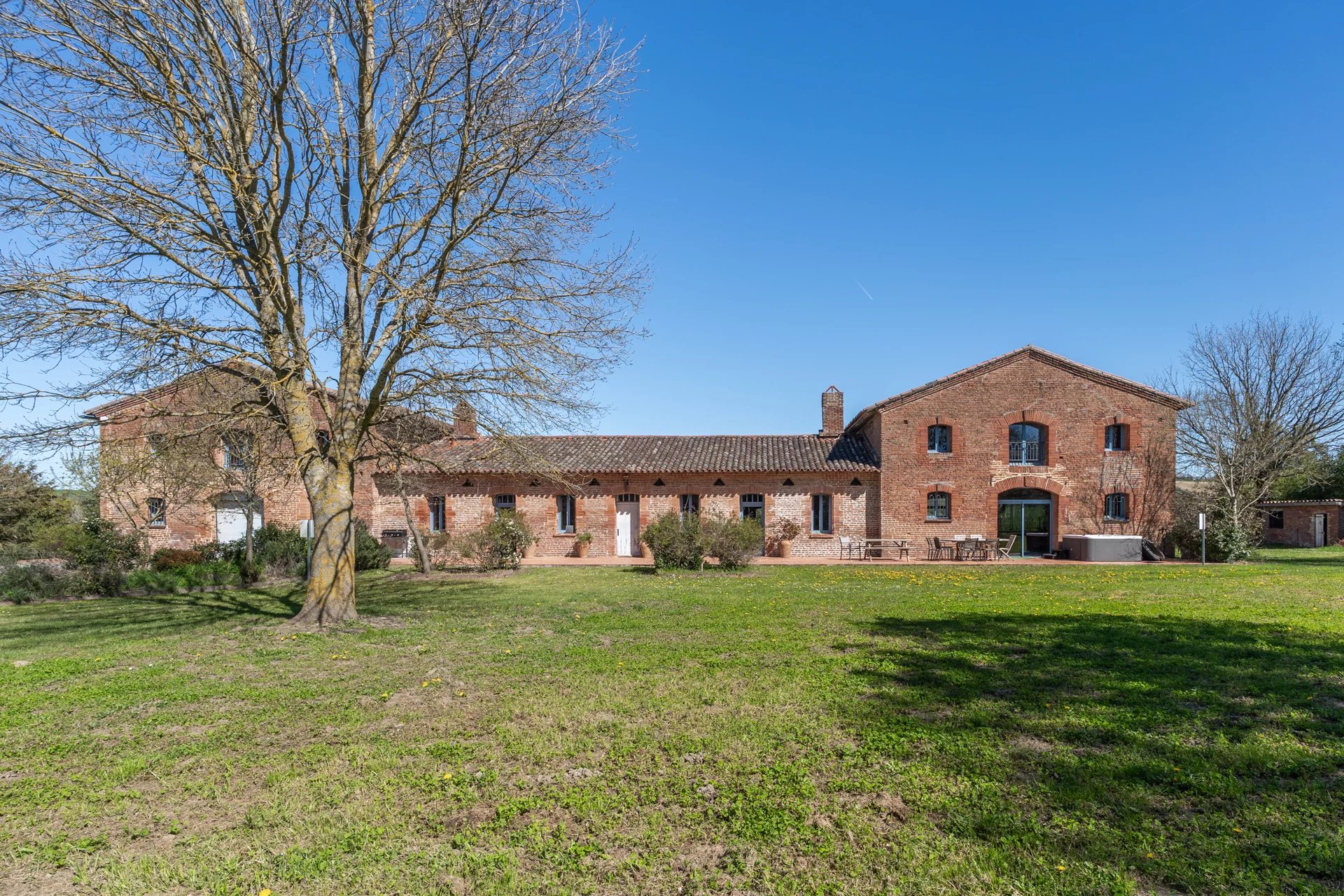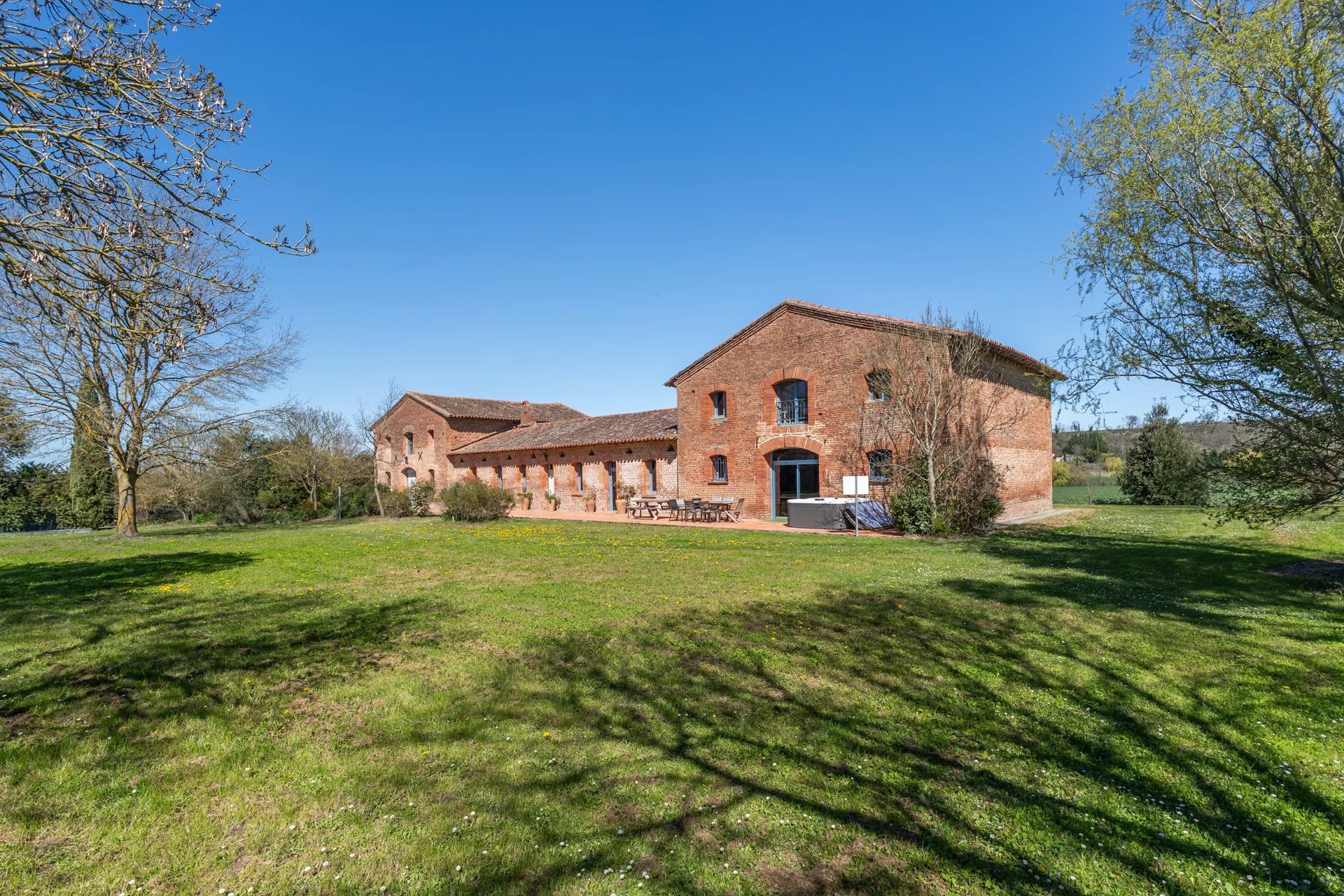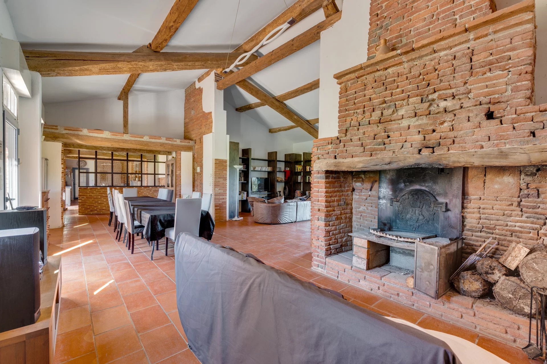 Nichée à quelques kilomètres seulement de la très prisée commune de Quint-Fonsegrives, et à environ 17 km de la Place du Capitole, cette ancienne métairie, jadis dépendante d’un château du XVIᵉ siècle, offre un cadre de vie rare et enviable pour les amoureux des vieilles pierres et des lieux empreints d’authenticité. Implantée à plus de 300 mètres de la voie publique elle offre un cadre totalement magique où règne le calme absolue. Déployant plus de 500 m² de surface habitable sur un parc arboré et paysager de 6042 m², cette bâtisse d’exception conjugue charme historique et confort contemporain. Entièrement rénovée avec goût, elle se prête à de multiples usages : vaste habitation familiale aux volumes généreux, ou possibilité astucieuse de scinder l’ensemble en deux parties distinctes (une aile privative et une partie locative ou indépendante), offrant ainsi une grande souplesse d’occupation. Au rez-de-chaussée de la bâtisse principale : • Une cuisine authentique de 30 m², entièrement équipée, ouvrant directement sur la terrasse sud de 100 m2 • Un salon majestueux d’environ 80 m², aux volumes impressionnants et aux hauts plafonds, agrémenté d’une cheminée d'époque et d’une imposante bibliothèque en chêne massif intégrant un espace télévision. • Une suite parentale avec dressing et salle de bains (sol en pierre du Portugal d’une grande élégance). • Une vaste pièce de vie ouverte abritant une piscine intérieure chauffée, bordée de généreuses baies vitrées donnant sur l’extérieur : un espace unique permettant de profiter du bassin en toute saison, avec accès direct à la terrasse et au jacuzzi extérieur. À l’étage (sols en chêne massif) : Une mezzanine distribue 4 chambres lumineuses, toutes ornées d’éléments patrimoniaux (briques foraines apparentes, charpente d'origine en peuplier ...) desservies par des toilettes indépendants et une salle de bains contemporaine avec douche à l’italienne. Une partie loft indépendante (accès privatif) : Composée de 2 chambres, d’une cuisine et d’une salle de bains, elle constitue une unité autonome idéale pour invités, famille ou location. Extérieurs d’exception : La propriété est entièrement clôturée, y compris sur l’allée d’accès de 300 m bordée de majestueux cyprès de Florence. Le parc de 7 000 m² offre un cadre verdoyant, intime et préservé, propice à la quiétude absolue tout en restant à seulement 17 km du cœur de Toulouse. Deux puits alimentent le terrain (profondeurs de 7 m et 38 m). Terrasses : • Terrasse sud de ~100 m² en terre cuite authentique, fondée sur une assise type voirie routière pour une solidité à toute épreuve. • Côté est : jacuzzi 6 places et plancha 3 feux. • Terrasse ouest de ~40 m², également en terre cuite. Dépendances : Garage de 120 m² pouvant accueillir plusieurs véhicules, avec espace rangement et local technique équipé d’un cumulus électrique et de deux pompes géothermiques assurant le chauffage d’une partie de la maison. Bien d’exception aux atouts multiples : très beaux volumes , matériaux nobles (terre cuite, briques anciennes, galets, chêne massif…), piscine intérieure, jacuzzi, géothermie, calme absolu et proximité de Toulouse. Une rare opportunité pour qui recherche authenticité, prestige et art de vivre au vert, à deux pas de la ville rose.