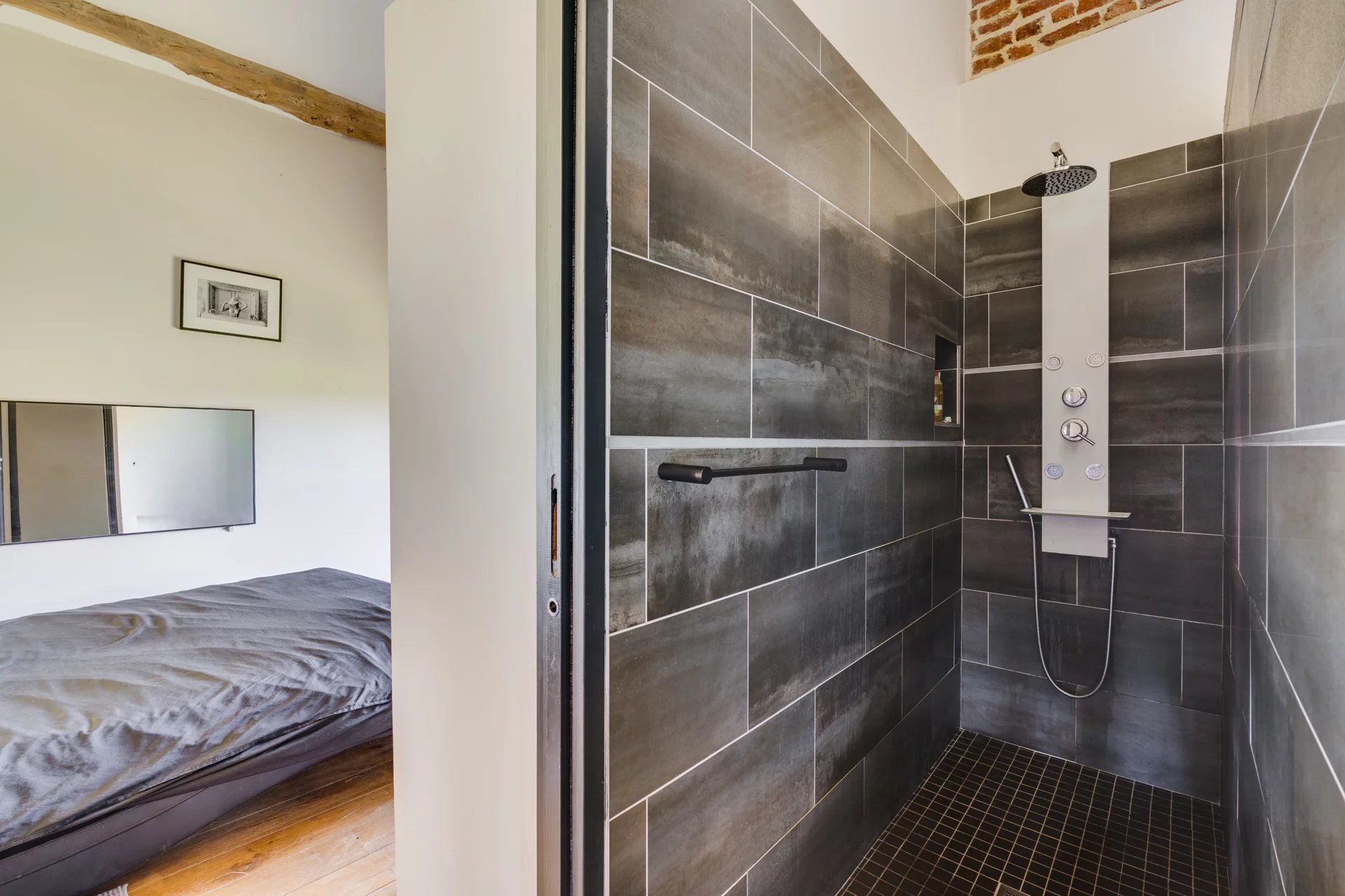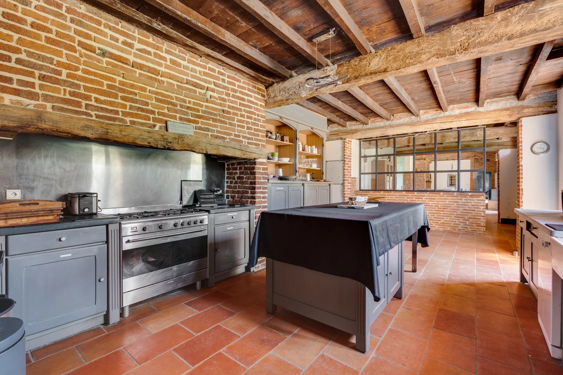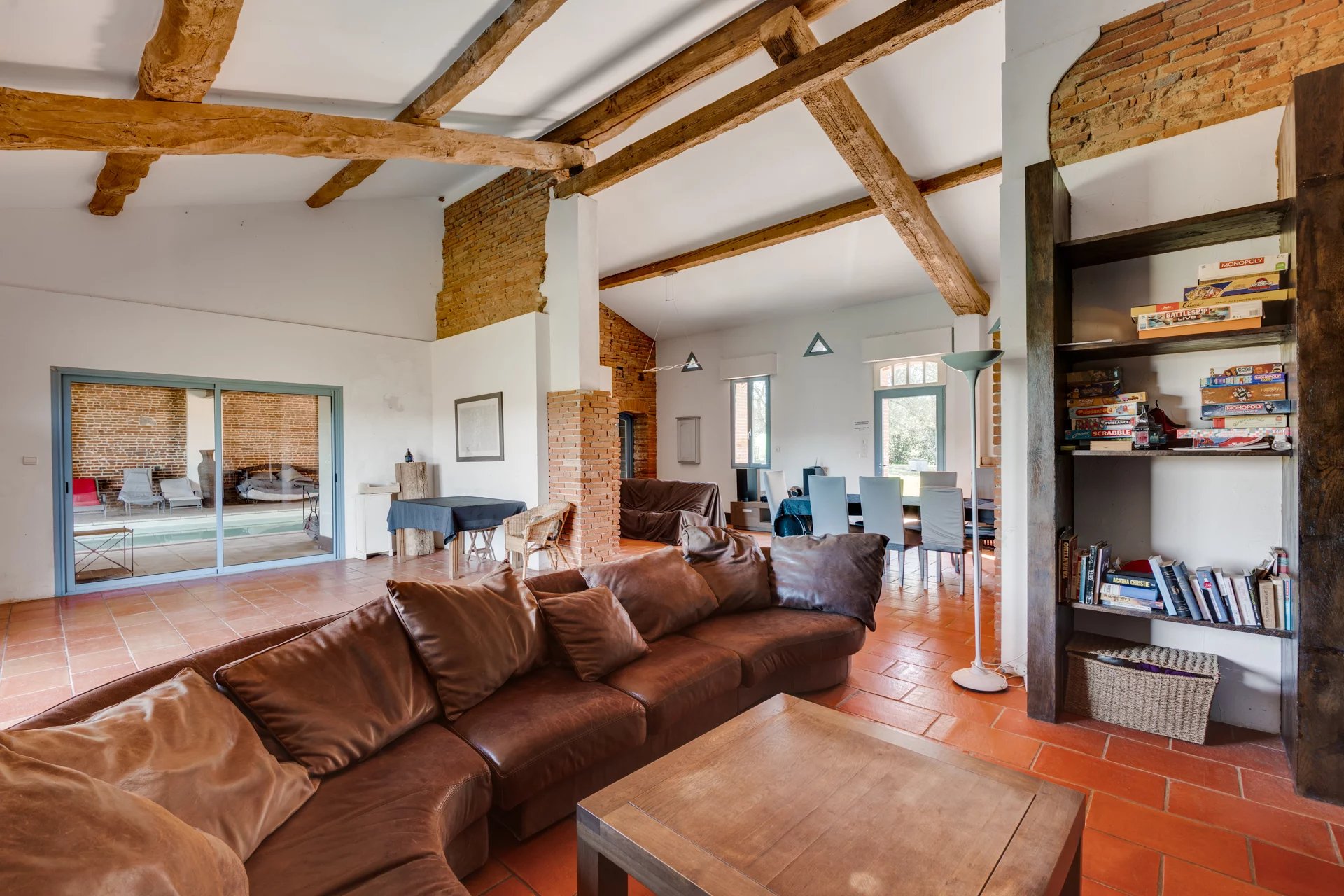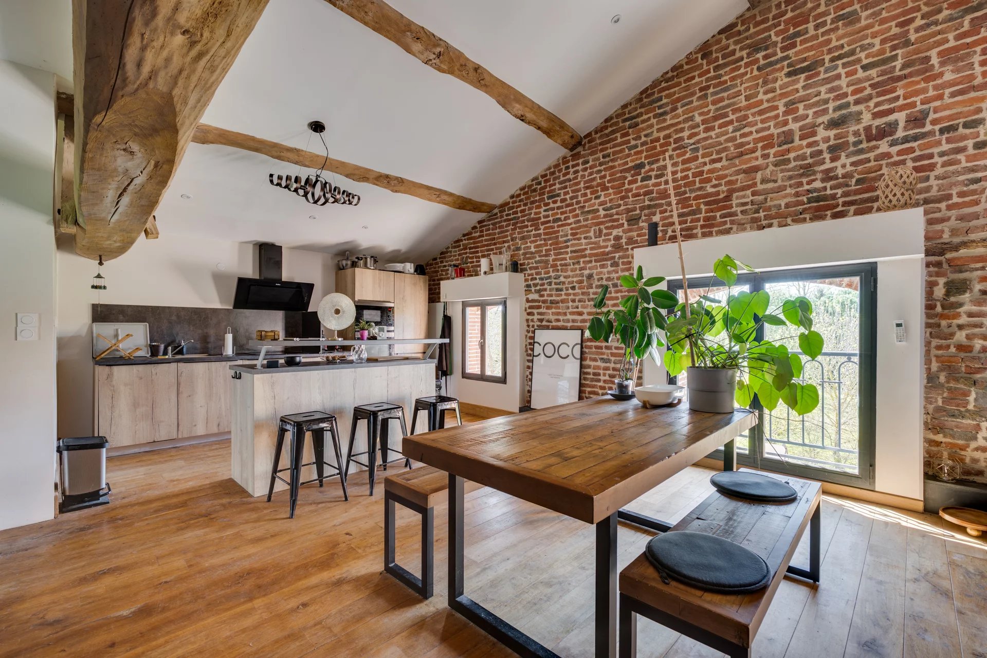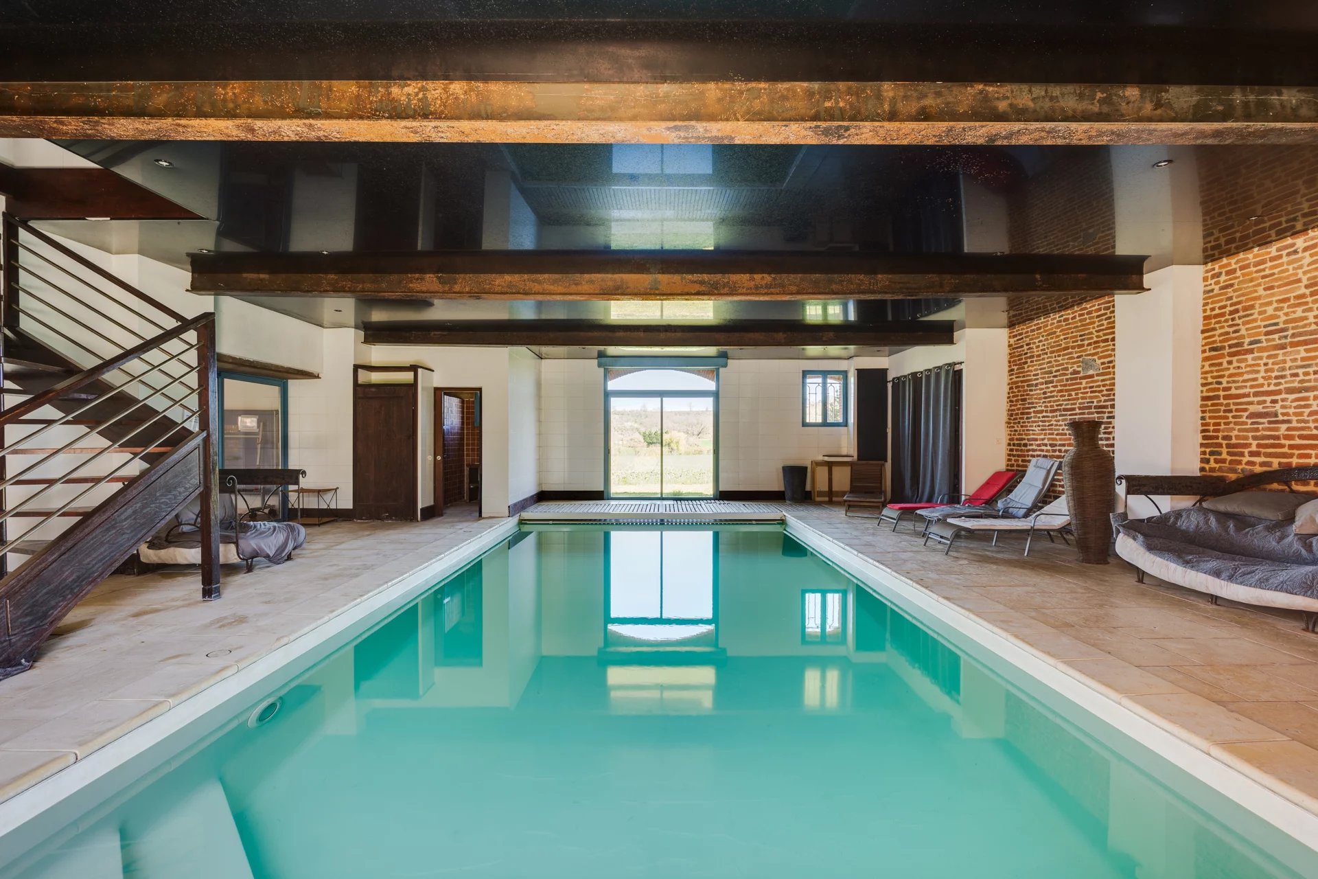 Nichée à quelques kilomètres seulement de la très prisée commune de Quint-Fonsegrives, et à environ 17 km de la Place du Capitole, cette ancienne métairie, jadis dépendante d’un château du XVIᵉ siècle, offre un cadre de vie rare et enviable pour les amoureux des vieilles pierres et des lieux empreints d’authenticité. Implantée à plus de 300 mètres de la voie publique elle offre un cadre totalement magique où règne le calme absolue. Déployant plus de 500 m² de surface habitable sur un parc arboré et paysager de 6042 m², cette bâtisse d’exception conjugue charme historique et confort contemporain. Entièrement rénovée avec goût, elle se prête à de multiples usages : vaste habitation familiale aux volumes généreux, ou possibilité astucieuse de scinder l’ensemble en deux parties distinctes (une aile privative et une partie locative ou indépendante), offrant ainsi une grande souplesse d’occupation. Au rez-de-chaussée de la bâtisse principale : • Une cuisine authentique de 30 m², entièrement équipée, ouvrant directement sur la terrasse sud de 100 m2 • Un salon majestueux d’environ 80 m², aux volumes impressionnants et aux hauts plafonds, agrémenté d’une cheminée d'époque et d’une imposante bibliothèque en chêne massif intégrant un espace télévision. • Une suite parentale avec dressing et salle de bains (sol en pierre du Portugal d’une grande élégance). • Une vaste pièce de vie ouverte abritant une piscine intérieure chauffée, bordée de généreuses baies vitrées donnant sur l’extérieur : un espace unique permettant de profiter du bassin en toute saison, avec accès direct à la terrasse et au jacuzzi extérieur. À l’étage (sols en chêne massif) : Une mezzanine distribue 4 chambres lumineuses, toutes ornées d’éléments patrimoniaux (briques foraines apparentes, charpente d'origine en peuplier ...) desservies par des toilettes indépendants et une salle de bains contemporaine avec douche à l’italienne. Une partie loft indépendante (accès privatif) : Composée de 2 chambres, d’une cuisine et d’une salle de bains, elle constitue une unité autonome idéale pour invités, famille ou location. Extérieurs d’exception : La propriété est entièrement clôturée, y compris sur l’allée d’accès de 300 m bordée de majestueux cyprès de Florence. Le parc de 7 000 m² offre un cadre verdoyant, intime et préservé, propice à la quiétude absolue tout en restant à seulement 17 km du cœur de Toulouse. Deux puits alimentent le terrain (profondeurs de 7 m et 38 m). Terrasses : • Terrasse sud de ~100 m² en terre cuite authentique, fondée sur une assise type voirie routière pour une solidité à toute épreuve. • Côté est : jacuzzi 6 places et plancha 3 feux. • Terrasse ouest de ~40 m², également en terre cuite. Dépendances : Garage de 120 m² pouvant accueillir plusieurs véhicules, avec espace rangement et local technique équipé d’un cumulus électrique et de deux pompes géothermiques assurant le chauffage d’une partie de la maison. Bien d’exception aux atouts multiples : très beaux volumes , matériaux nobles (terre cuite, briques anciennes, galets, chêne massif…), piscine intérieure, jacuzzi, géothermie, calme absolu et proximité de Toulouse. Une rare opportunité pour qui recherche authenticité, prestige et art de vivre au vert, à deux pas de la ville rose.