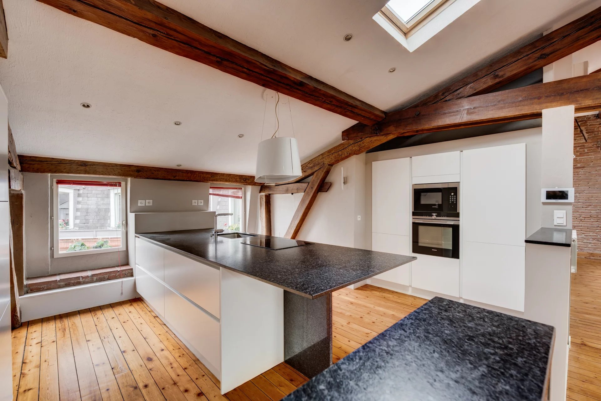 Situé au sein d’un immeuble de standing avec ascenseur, cet appartement en duplex offre un emplacement privilégié en plein centre historique de Toulouse, à deux pas de la place du Capitole. Dès l’entrée, un escalier vous conduit à un vaste séjour, sublimé par des éléments d'époque, tels que qu'un parquet en chêne ainsi que des briques apparentes. De plus, des velux offrent une vue directe et imprenable sur le Capitole. Le séjour aux volumes généreux, s’ouvre sur une cuisine entièrement équipée et offre également la possibilité d’aménager une troisième chambre selon vos besoins. Idéalement pensée, une salle de bain est déjà présente à ce niveau, permettant une création facile supplémentaire. Côté nuit, l’appartement dispose de deux chambres, accompagnées de deux salles d’eau et d'une buanderie. L’appartement séduit par son charme, alliant cachet de l’ancien, prestations contemporaines et vue exceptionnelle sur l’un des monuments les plus emblématiques de Toulouse.