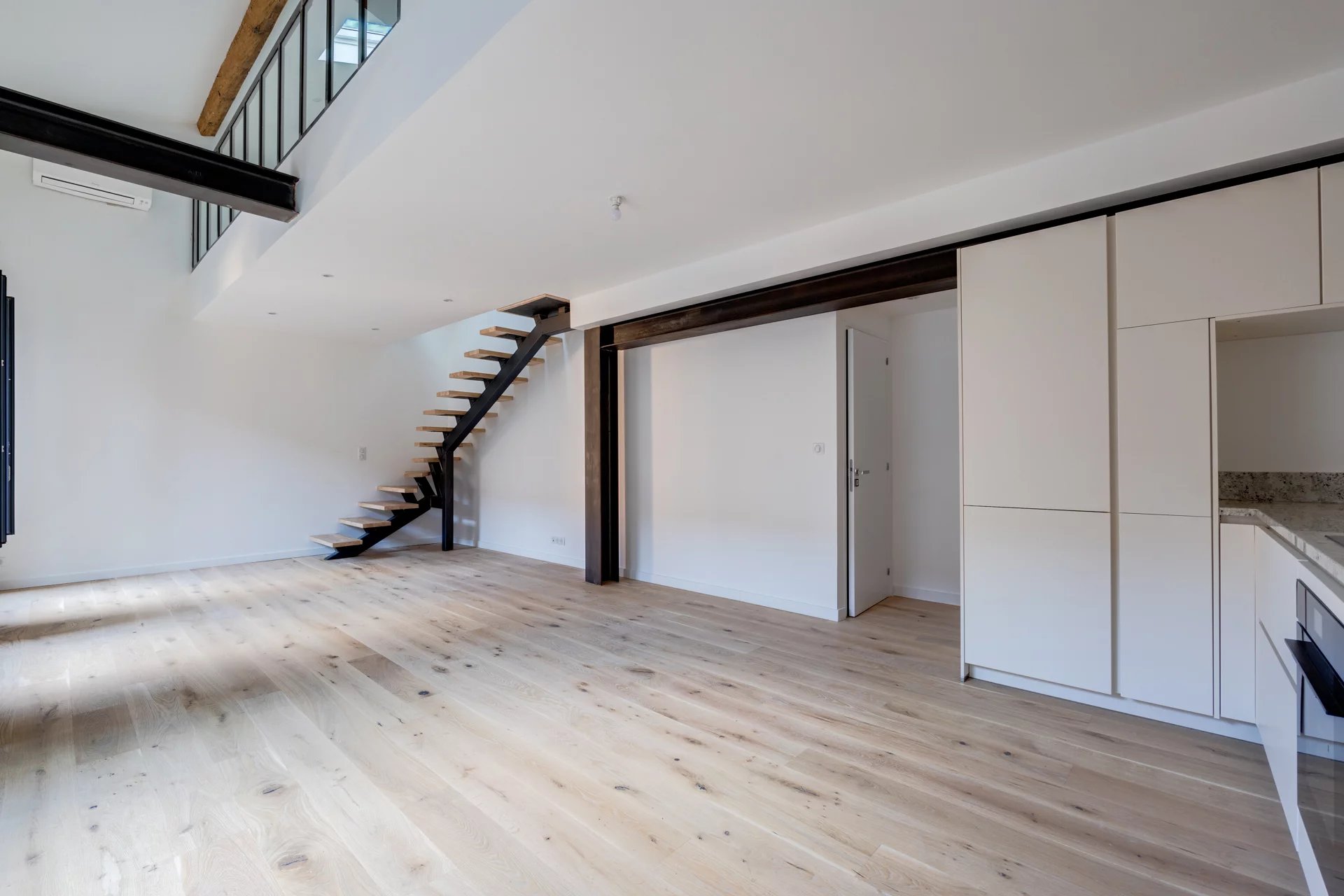 Seul sur son palier, il se distingue par son balcon filant avec vue dégagée et son spectaculaire salon-salle à manger.