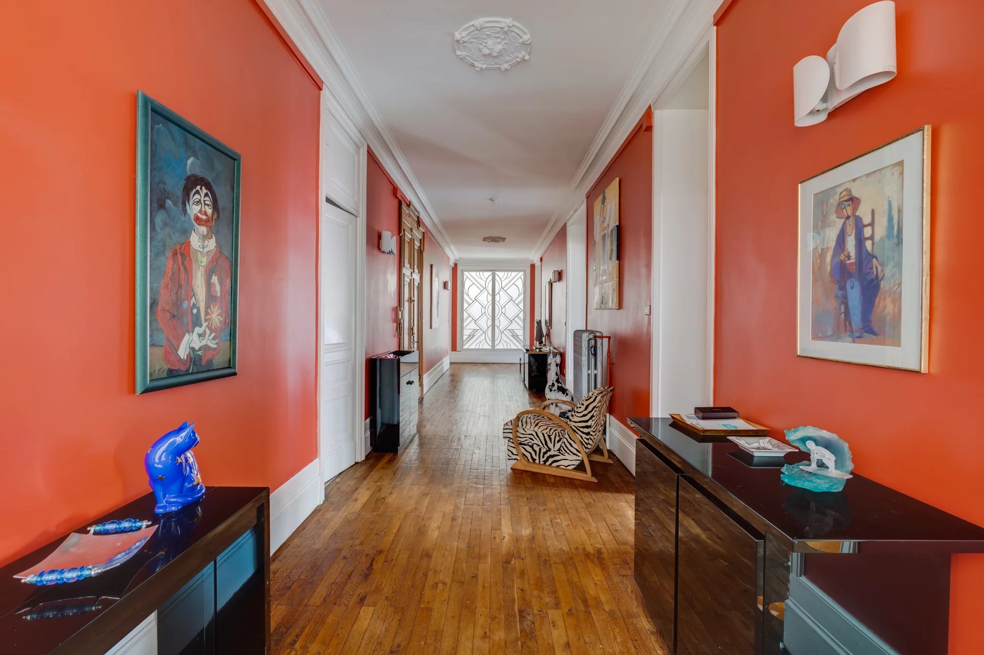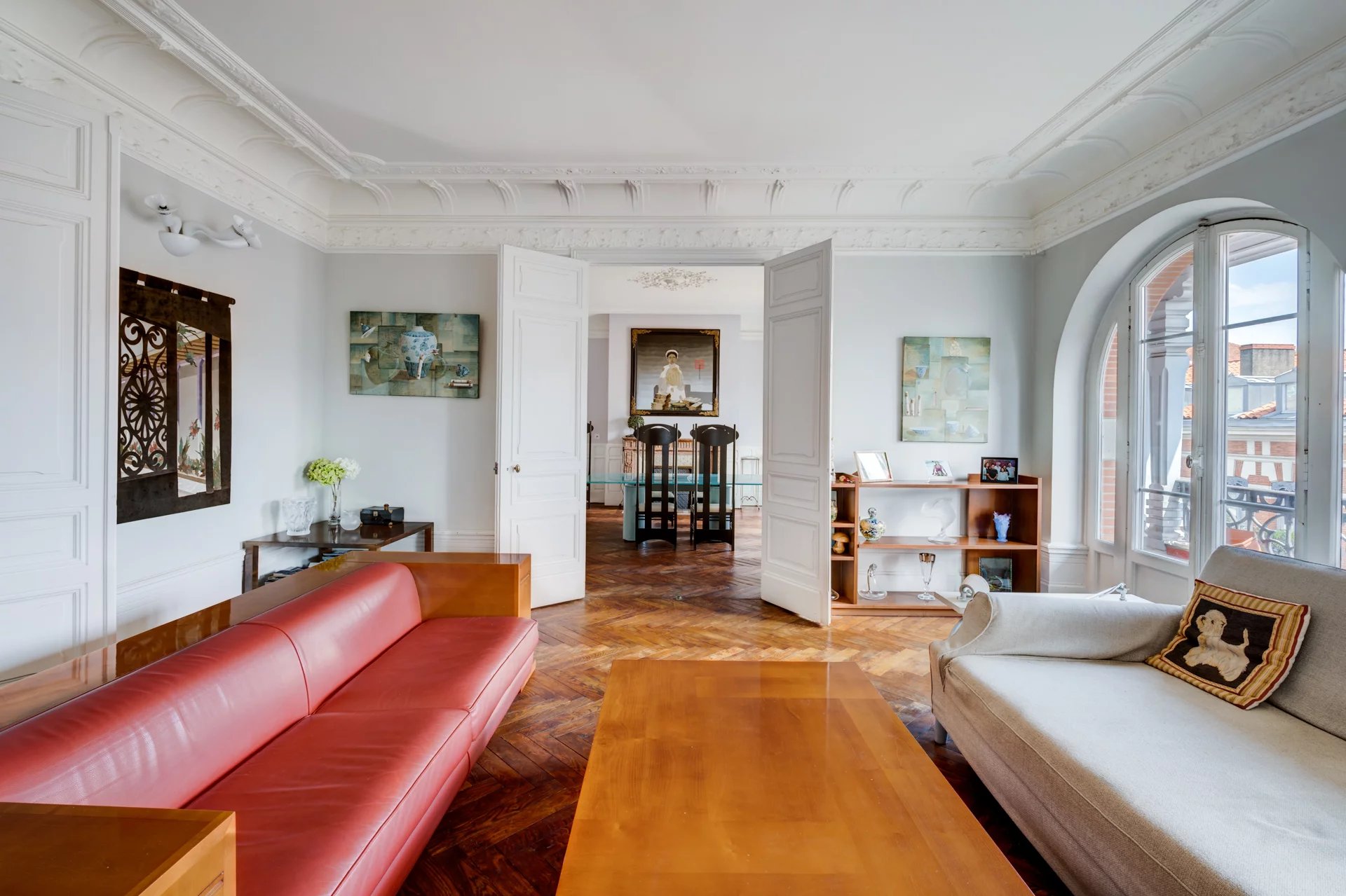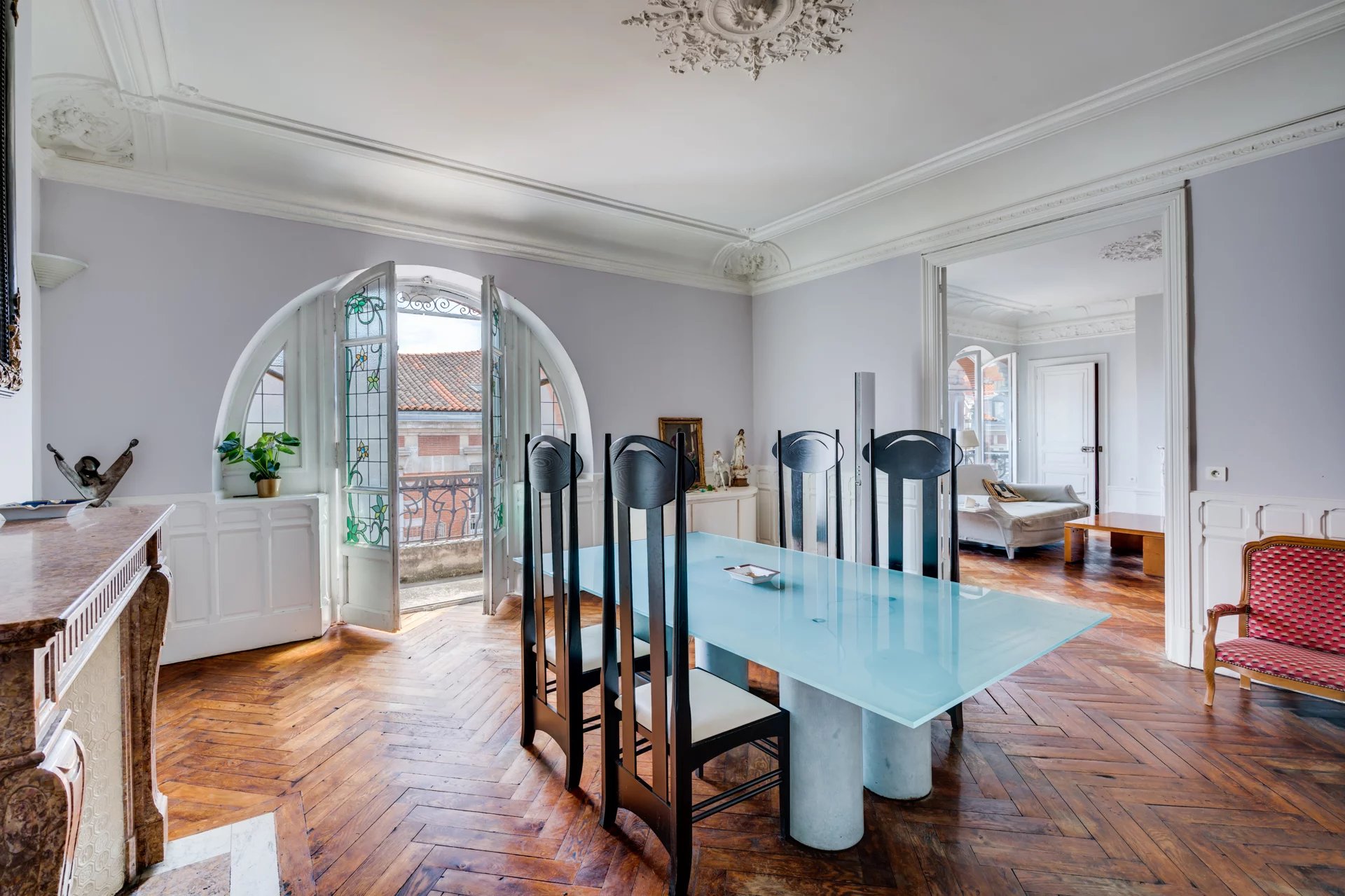 Toulouse - Rue de Metz Situé au 4ème et dernier étage d’un magnifique immeuble haussmannien sans ascenseur, cet appartement d’exception bénéficie d’un volume généreux et d’un cachet unique. L'appartement s’ouvre sur une vaste galerie d’entrée qui mène à un double séjour lumineux, doté de grandes fenêtres et de cheminées d’époque, témoins du charme et du caractère de l’ancien. La salle à manger attenante, spacieuse, offre un espace idéal pour recevoir dans une ambiance élégante et chaleureuse. La cuisine séparée, en partie aménagée, conserve le cachet traditionnel, avec ses matériaux d’époque et ses éléments d’origine. L’espace nuit comprend quatre chambres de dimensions confortables, dont certaines disposent de rangements intégrés, ainsi qu’un bureau pouvant servir de chambre supplémentaire ou d’espace de travail. L’appartement dispose de deux salles de bain, offrant fonctionnalité et confort sans renier le style ancien. Les sols en parquet point de Hongrie, les cheminées en marbre, et les larges balcons s'ajoutent à l’atmosphère authentique et chaleureuse du bien. Les parties communes de l’immeuble sont soignées, avec un standing élevé, à l’image de l'appartement. Ce bien est également doté d’un garage en jouissance privative et d’une cave pour le rangement. Sa situation privilégiée, à proximité immédiate des commerces, des transports en commun et des écoles, en fait un lieu de résidence idéal pour une famille souhaitant vivre dans un cadre élégant, empreint du charme de l’ancien.